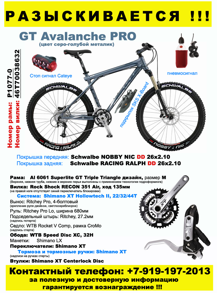 нашелся велосипед благодаря друзьям из Триал-спорта в Брянске, куда вел был пригнан на ремонт. Человека которого пригнал туда вел сдал полиции, но и даже после этого они не особо хотят что-то делать ... "новый хозяин" меняет показания, врет, но никого это не волнует ...в полиции говорят, ну он его купил ...что ничего не доказывает и сумму покупки "новый хозяин" уже с 15 000 на 5 000 поменял, все задокументировано...